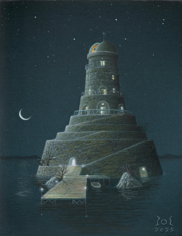 湖の中にある人工島に作られた観測塔。