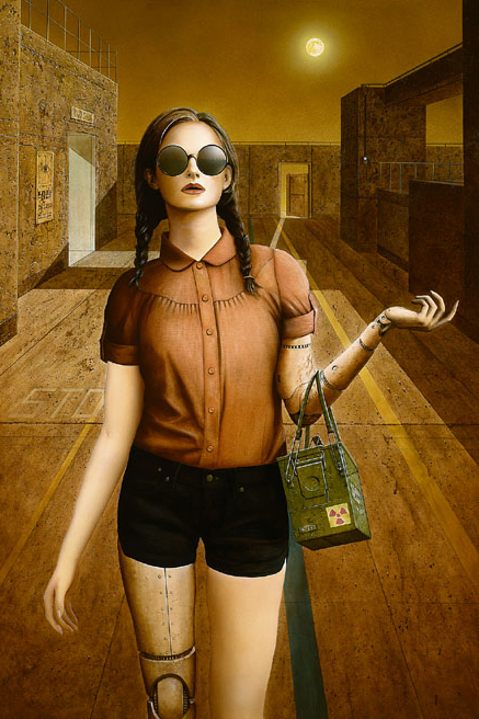 すべてが錆びついてしまったような世界にたたずむ一人の女性。
