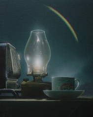 「薬瓶とランプ」 F3 アクリル 油彩 |