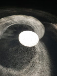 12:30頃に円形の光が現れました。 明石で太陽が南中した時が昼の12:00と中学校で教わりますが、 実際は季節によって結構ずれるのだそうです。 ぴったり12:00にならなかったのはその関係か、 それとも設置位置が少しずれているのか、そこの所は不明です。 光の入り口が縦長なのは、 季節による太陽の南中高度の差を 考慮したものと思われます。 |